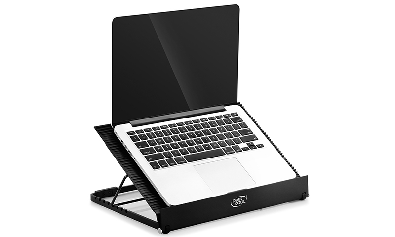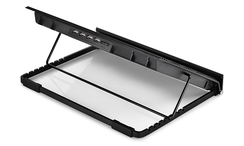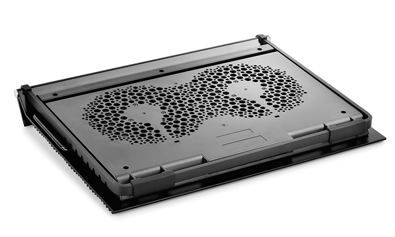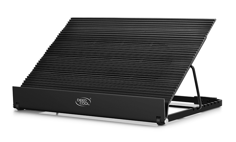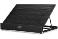 DEEPCOOL N9 EX je zmogljiv črn hladilnik iz aluminijeve zlitine z ventilatorjem (700–1200 RPM) in tišino 21,5–26,5 dB(A). Opremljen je z 1x USB IN + 3x USB OUT in ponuja 8 stopenj nagiba. Primeren za prenosnike do 17,3". Dimenzije: 360 × 272 × 45 mm, teža: 1622 g.
