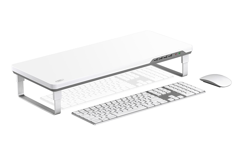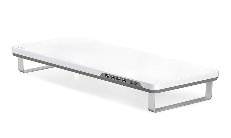 DEEPCOOL M-DESK F1 je robustno stojalo iz aluminijeve zlitine z nastavljivo višino (7,5 ali 10,4 cm), 4x USB 2.0 priklopi ter audio vhodi za slušalke in mikrofon. Nosilnost do 10 kg, primerno za prenosnike do 27". Dimenzije: 550 × 230 × 24 mm, teža: 1098 g.