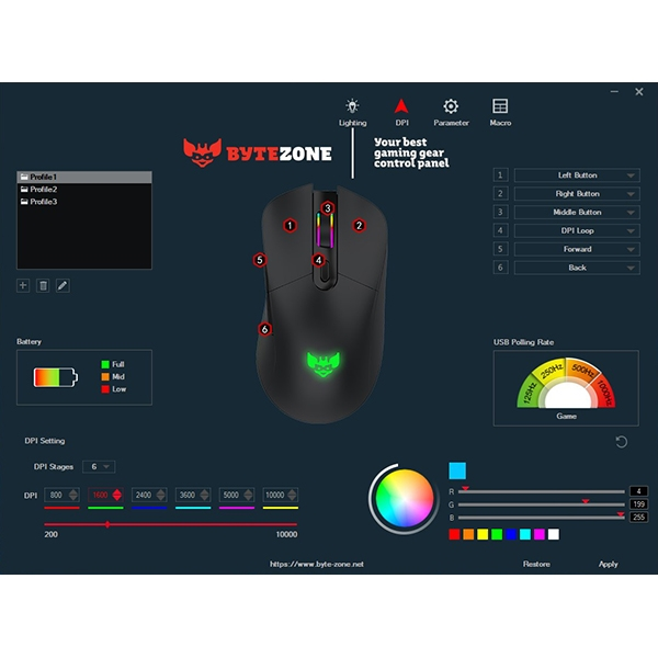 *Če želite prilagoditi RGB osvetlitev, nastavitve miške in makrov, prenesite programsko opremo izdelka s spletne strani Bytezone.