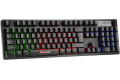 MARVO K616A je 104-tipkovna membranska gamerska tipkovnica z 3-barvno mavrično osvetlitvijo, full anti-ghosting podporo in zaščito pred manjšimi politji. Trajna (≥8M klikov), z USB priklopom (1,5 m kabel). Dimenzije: 447 x 167 x 40 mm.