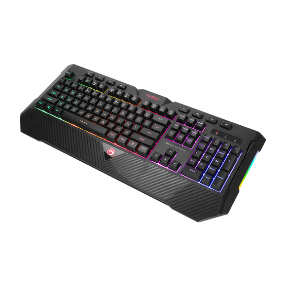 MARVO K656 je žična membranska gaming tipkovnica s 112 tipkami, ocenjena za ≥10 milijonov pritiskov. Ponuja mavrično osvetlitev, 3,5 mm hod tipke, USB 2.0 povezavo in 1,5 m kabel. Združljiva z Windows 7 in novejšimi – odlična izbira za vsakdanjo igro.